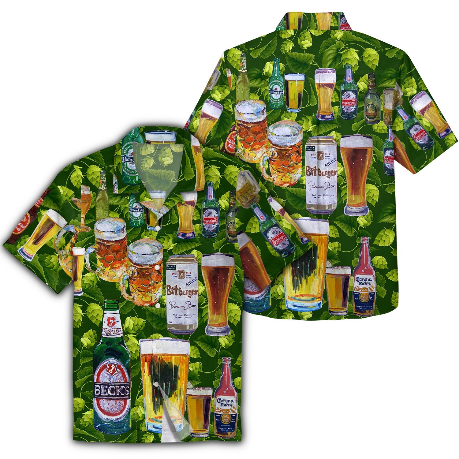 NoClaws Beer Hawaii Shirt Beer Cups And Bottle Pattern Tropical Green Hawaiian Shirt Beer Aloha Shirt
