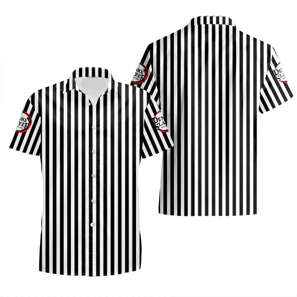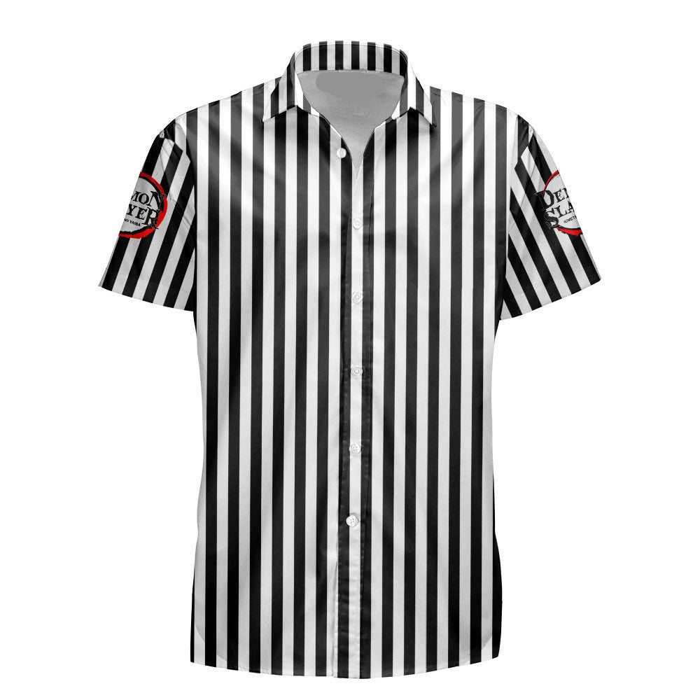 NoClaws NoClaws Demon Slayer Hawaii Shirt Demon Slayer Obanai Iguro Haori Pattern Hawaiian Shirt Black White Unisex