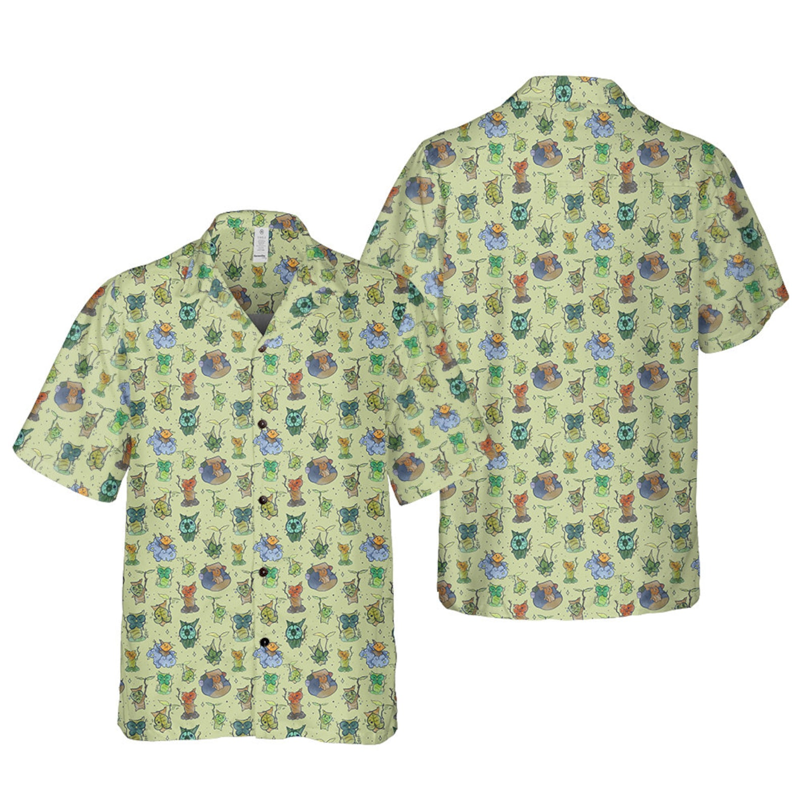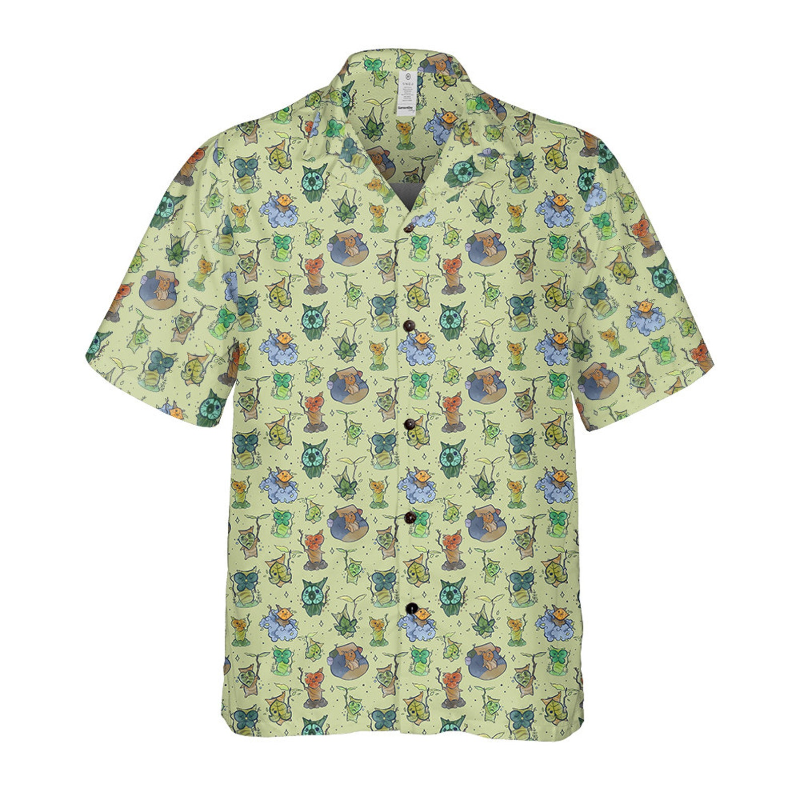NoClaws Legend Of Zelda Hawaii Shirt Legend Of Zelda Korok Creature Pattern Hawaiian Shirt Green Unisex