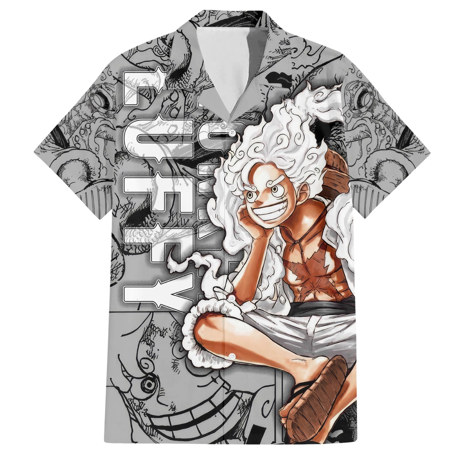 NoClaws NoClaws One Piece Hawaii Shirt Luffy Gear 5 Most Wanted Hawaiian Shirt Gray Unisex