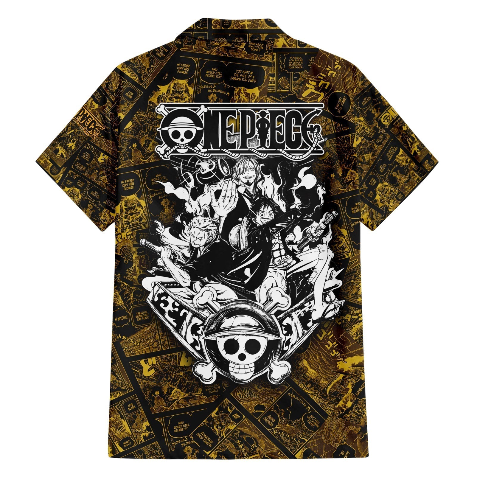 NoClaws NoClaws One Piece Hawaii Shirt Luffy Zoro Sanji One Piece Manga Pattern Hawaiian Shirt Black Yellow Unisex