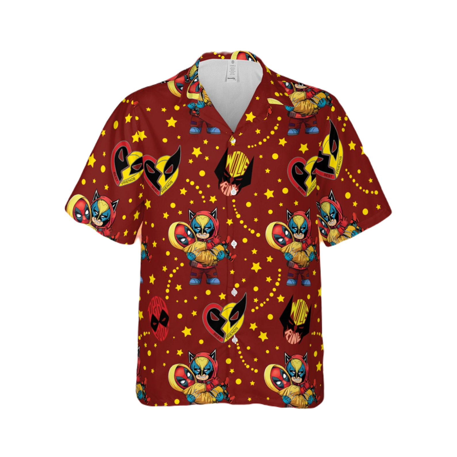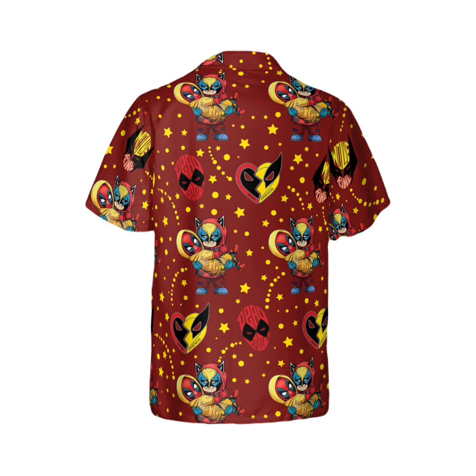 NoClaws Deadpool Hawaii Shirt Marvel Chibi Deadpool And Wolverine Pattern Hawaiian Shirt Red Unisex