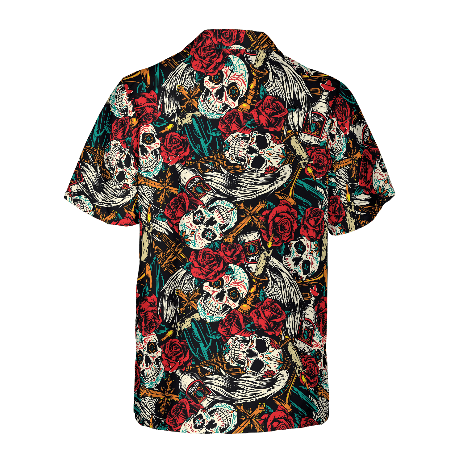 NoClaws Skull Hawaii Shirt Sugar Skull Rose Candle Pattern Hawaiian Shirt Red White Unisex