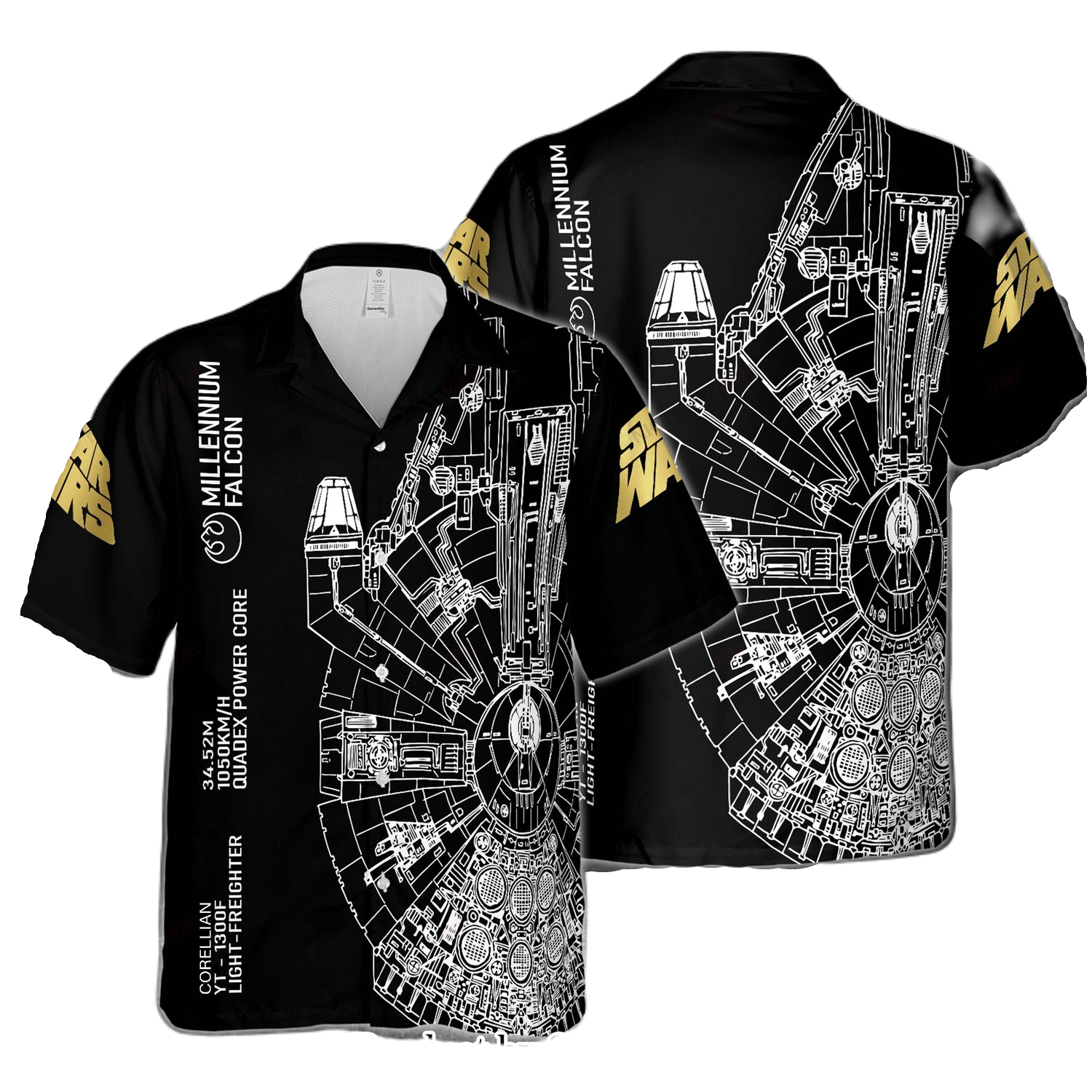 NoClaws Star Wars Hawaii Shirt Star Wars Millennium Falcon Ship Pattern Hawaiian Shirt Black Unisex