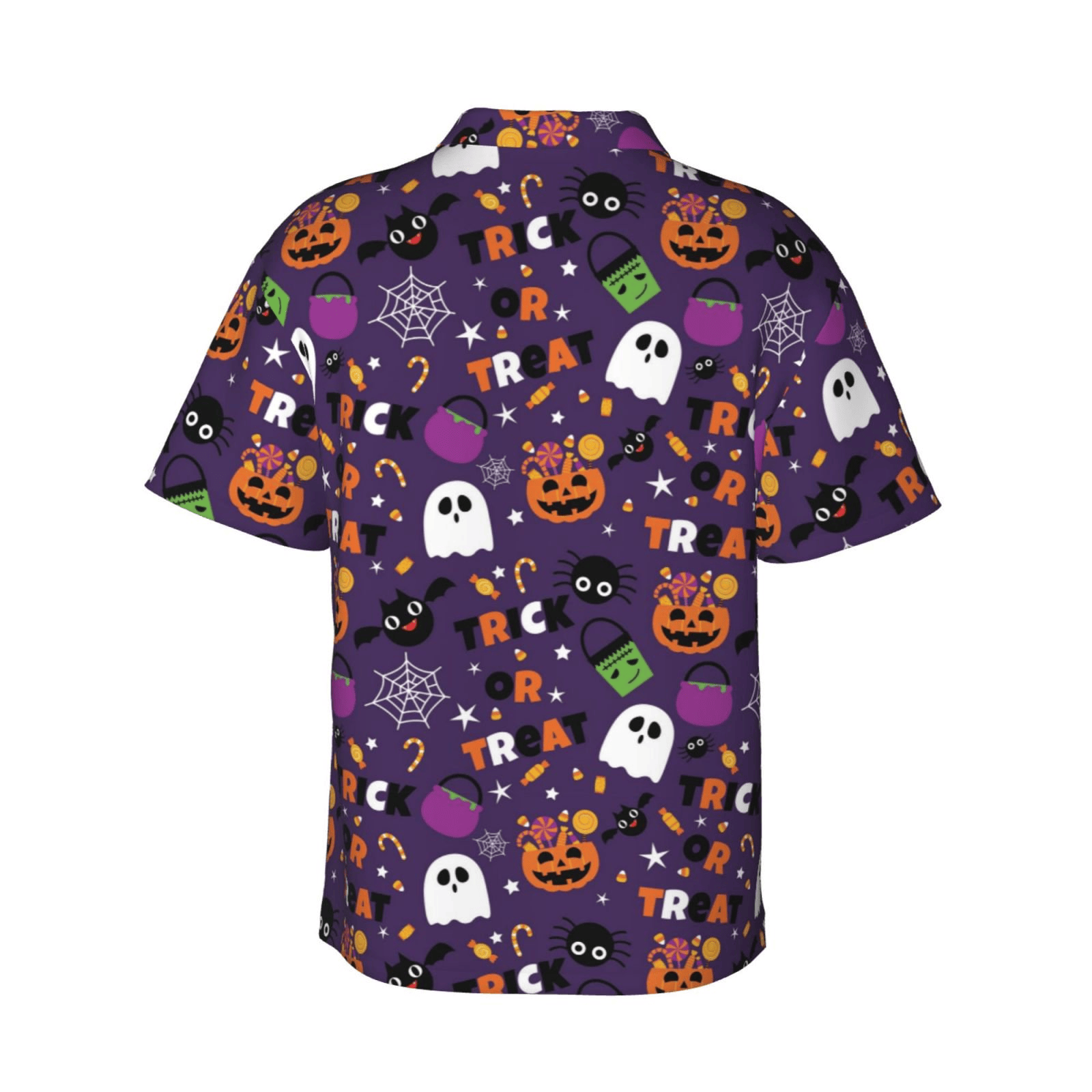 NoClaws Halloween Hawaii Shirt Trick Or Treat Candies Ghost Pattern Hawaiian Shirt Purple Unisex