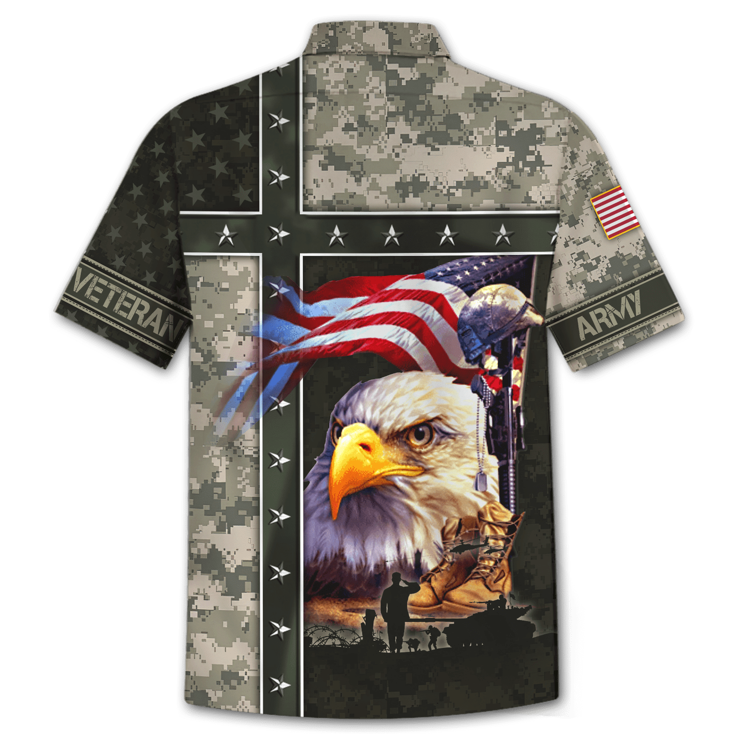 NoClaws Veteran Hawaii Shirt US Army Veteran Memorial Day Hawaiian Shirt Green Gray Unisex